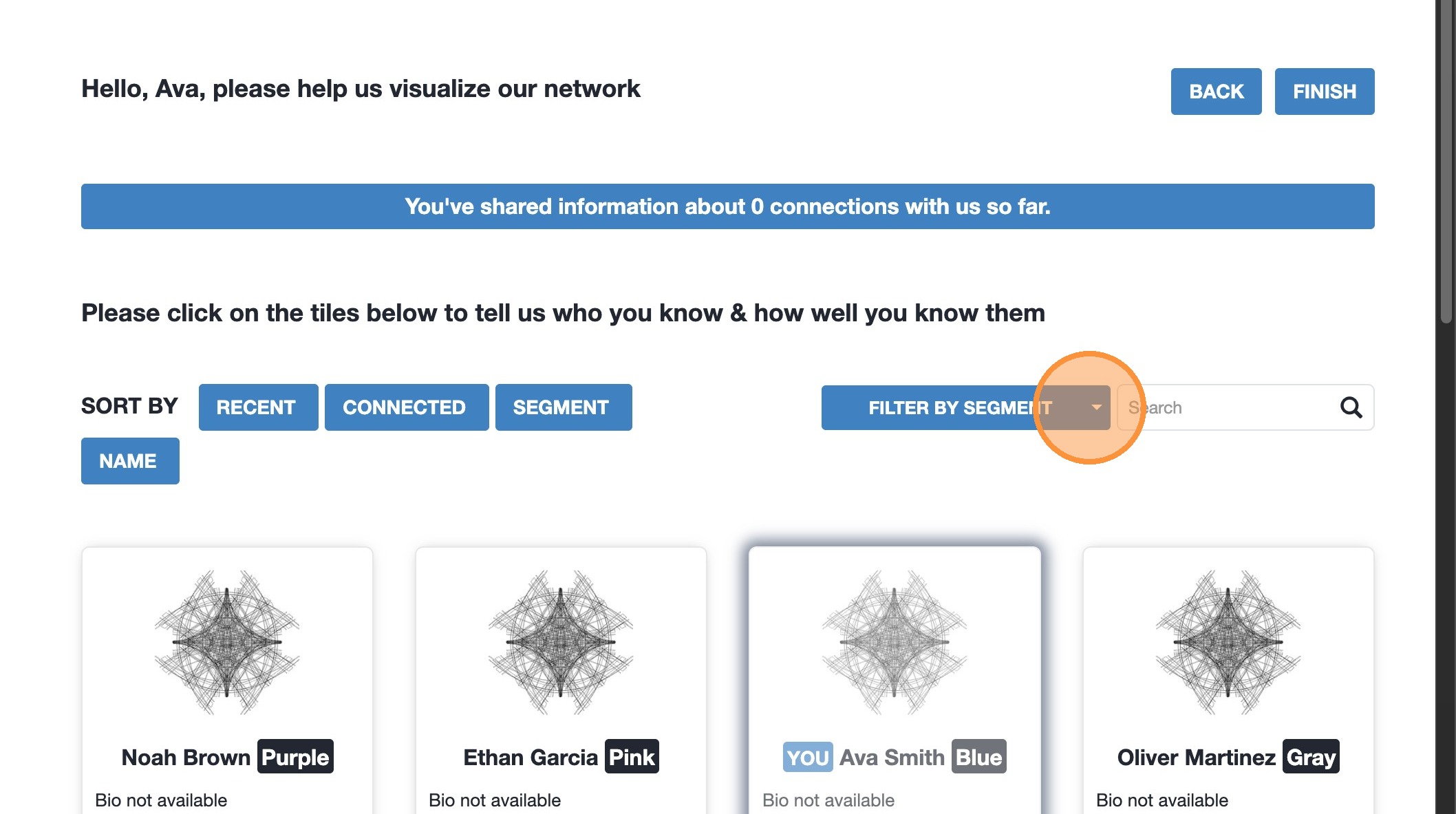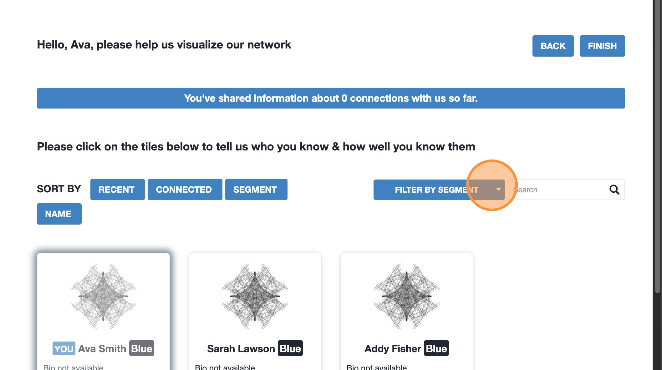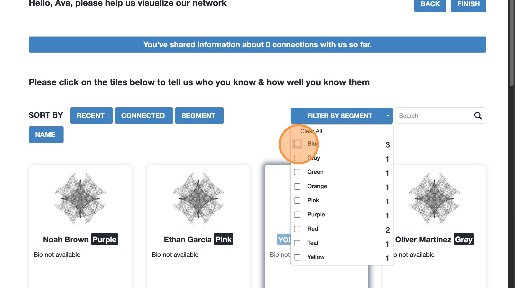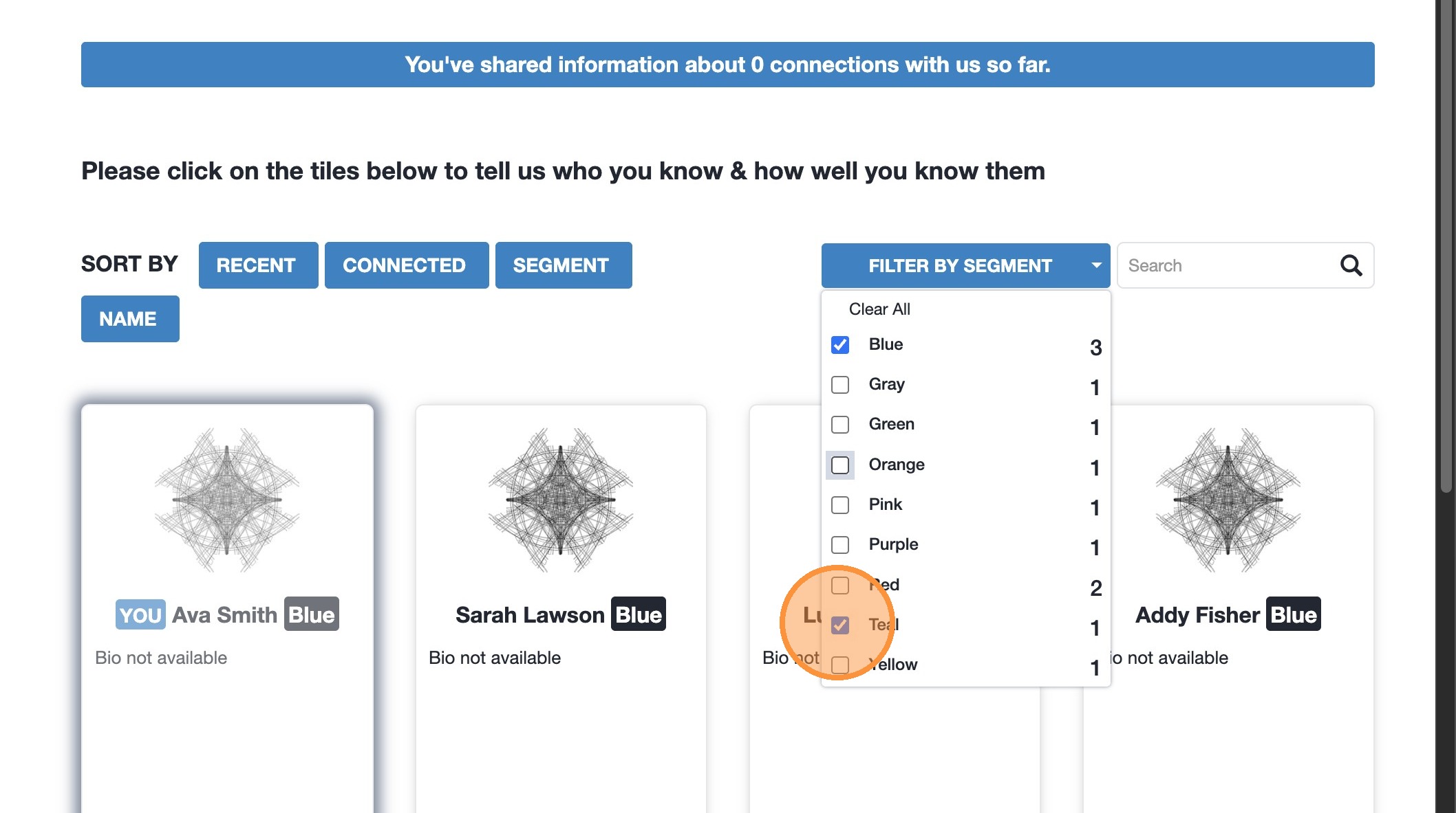 1. Click “Connections” to find members you want to add a connection to. 2. Selec